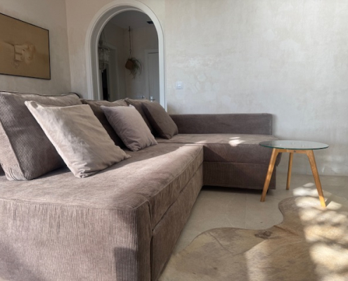 Für entspannte Stunden oder gesellige Abende steht Ihnen ein hochwertiges Sofa 🛋️ zur Verfügung – ideal zum Entspannen oder für Gäste.