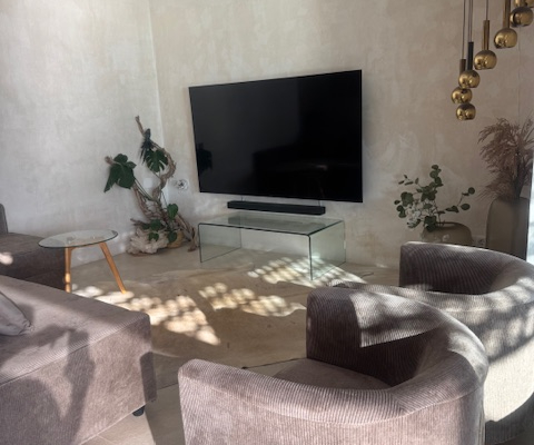 Das Herzstück dieses luxuriösen Wohnbereichs ist der beeindruckende 75-Zoll-TV 📺 mit einer erstklassigen Dolby Atmos Soundbar 🎵, die Sie mitten ins Geschehen versetzt. Genießen Sie Ihre Lieblingsfilme & Serien in atemberaubender Qualität, als wären Sie im Kino – nur exklusiver!