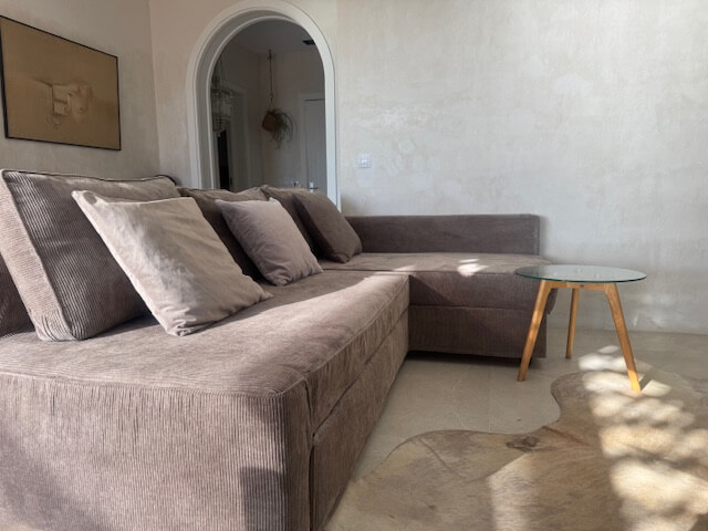 Für entspannte Stunden oder gesellige Abende steht Ihnen ein hochwertiges Sofa 🛋️ zur Verfügung – ideal zum Entspannen oder für Gäste.