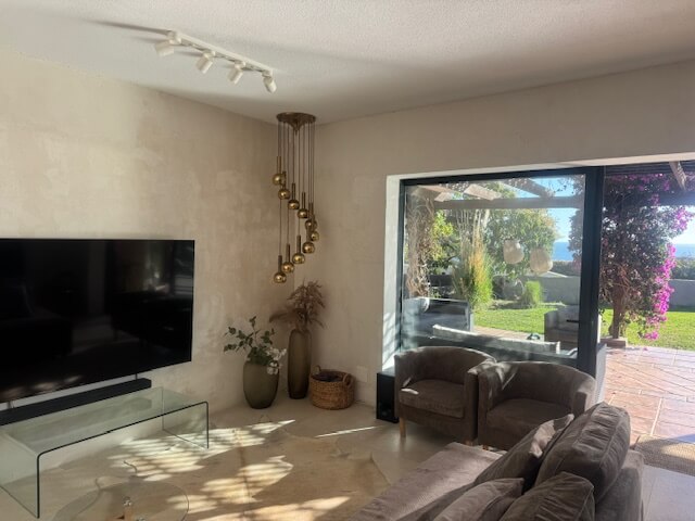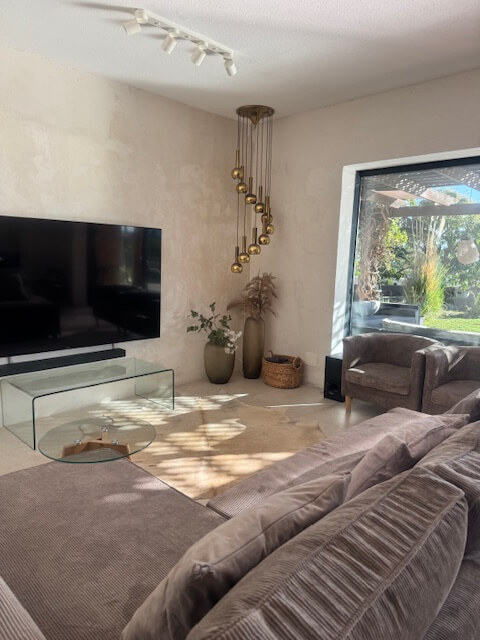 Willkommen in unserem stilvollen & großzügigen Wohnzimmer, das durch eine riesige Schiebetür 🪟 nahtlos mit der Terrasse verschmilzt. Diese einzigartige Verbindung zur Natur bringt Licht & Weite 🌿☀️ in den Raum und schafft ein Gefühl von grenzenloser Freiheit – drinnen und draußen zugleich.