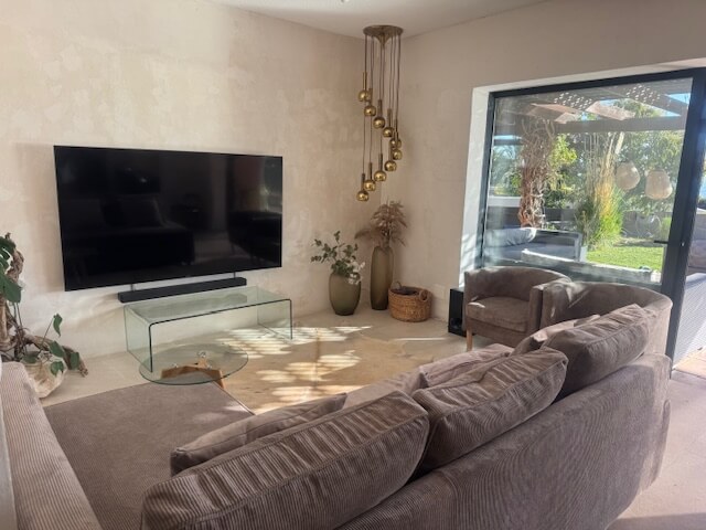 Das Herzstück dieses luxuriösen Wohnbereichs ist der beeindruckende 75-Zoll-TV 📺 mit einer erstklassigen Dolby Atmos Soundbar 🎵, die Sie mitten ins Geschehen versetzt. Genießen Sie Ihre Lieblingsfilme & Serien in atemberaubender Qualität, als wären Sie im Kino – nur exklusiver!